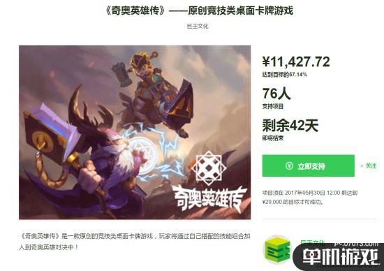 《奇奥英雄传》是由国内独立游戏工作室巨壬文化开发,椰岛游戏代理发行一款原创的竞技类桌面卡牌游戏,玩家将通过自己搭配的技能组合加入到一场史诗的对决之中!目前本游戏已在摩点网正式开启众筹:网页链接