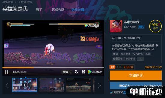 作为Wegame平台升级后第一部作品,《英雄就是我》的首发价格力度很有吸引力。原价36元,上架首个月只需要18元。