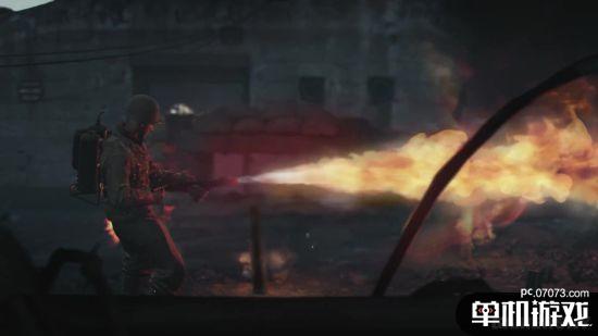 美军装备的M2式喷火器,在欧洲战场、太平洋战场中都有使用,可以造成巨大的心理震撼。M2式喷火器在《使命召唤5:战火世界》中也有过出场。