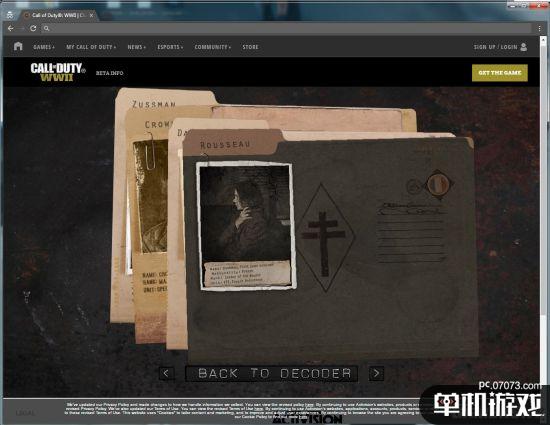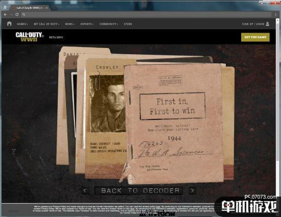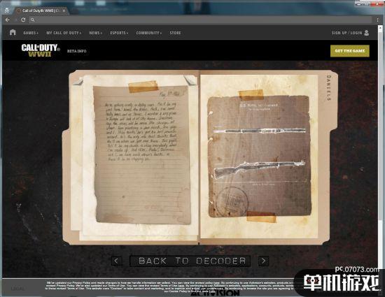 《使命召唤14:二战》在不久前正式公布了首支预告,随后游戏的官网就上线了更多的新情报,其中一个包含“密码机”的机密页面就暗藏了本作的大量细节。