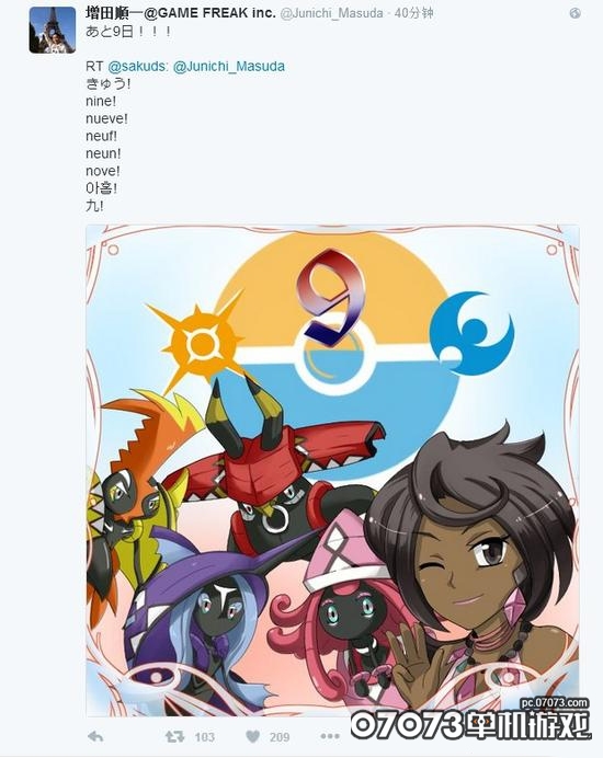 16年末发生的事件当时引起轩然大波,《口袋妖怪》(又名:精灵宝可梦)设计师增田顺一在推特发文庆祝《精灵宝可梦:日月》进入游戏发售9天倒计时,并用多国语言打出当然也就包括中文的汉字“九”,就在这让粉丝格外振奋的消息下,一条神奇的留言出现了。
