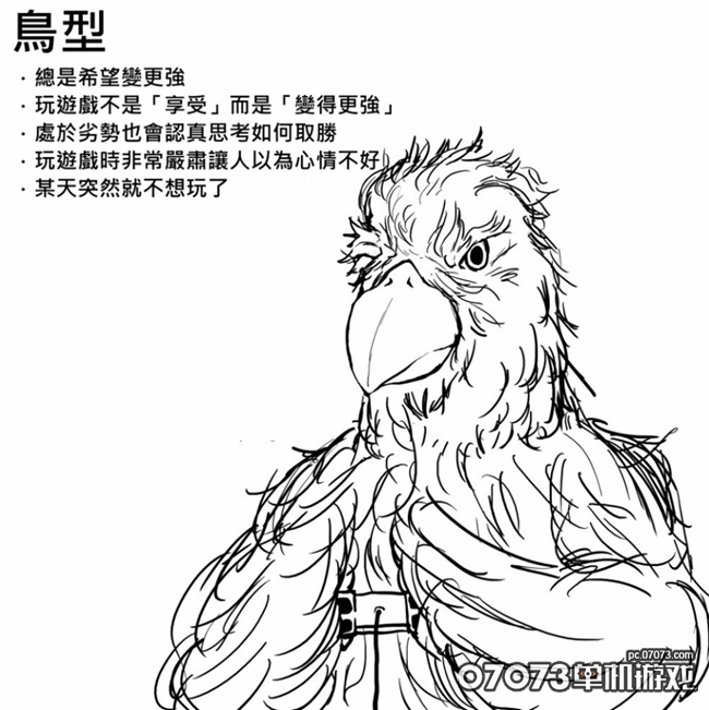 07073小编更倾向于称它为“鹰型玩家”。顾名思义是一身傲骨的存在,任何时都不会服输对自己要求严格,希望可以带队友飞也为此努力,十分在乎输赢因此游戏起来让人觉得有些严肃。这类玩家无论游戏还是生活都会给自己极大压力努力去变强。