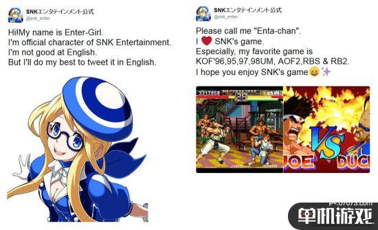 这位看板娘在官推上和大家问好,并且称自己不善长英语,但是将会努力学习,用英文发推,她最喜欢的游戏是拳皇96/95/97/98UM等等,希望大家可以继续支持SNK。