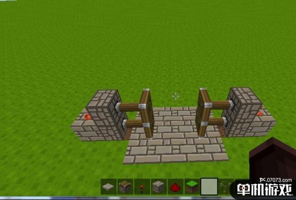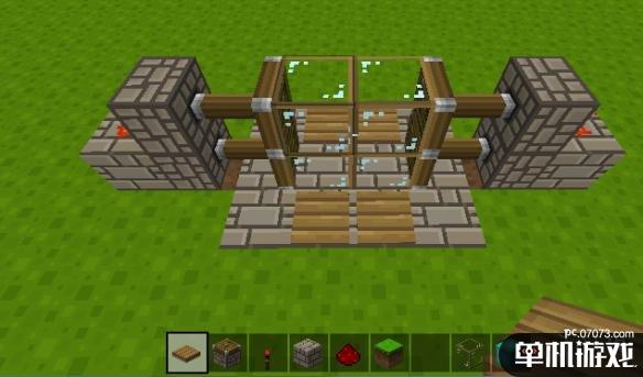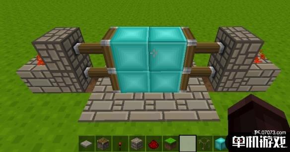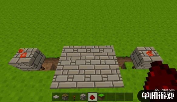 中间放上你喜欢的方块,可以是任意方块,只要能被粘性活塞拉得动的都行。