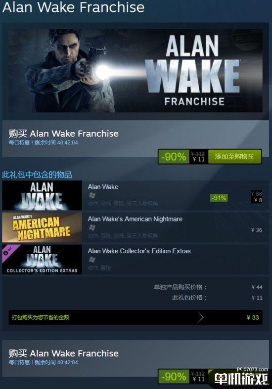在杉果开启了本作的7元促销活动后,目前《心灵杀手》也已经在Steam上开启促销,游戏本体单独售价8元,而大包则售价11元,包含了游戏本体,DLC以及美国噩梦。这次促销仅有48小时,卖完就绝版,玩家们要抓紧了。
