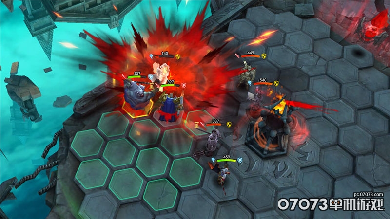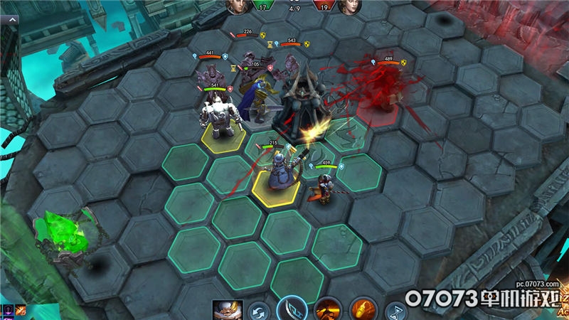 开始游戏前,玩家需要先配置好自己的英雄组合,从20位登场英雄中选出4位参与战斗,2位作为替补。每个英雄都有2个主动技能可以施放,而英雄的血量、伤害、防御类型、移动力等等属性也各有不同。
