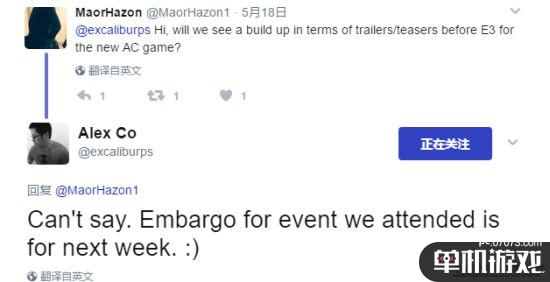 外媒PSLifeStyle的主编这两天在Twitter上回答网友提问时透露了一些内容,有网友问他会不会在E3之前看到《刺客信条》新作的预告或预热等内容?主编表示,目前还不能说,他们参与的一场活动的相关内容在下周才可解禁对外公布。