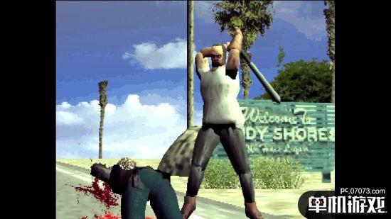 98DEMAK将2013年就已经发售的《GTA5》搬到了1998年,麦克、老崔和小富的脸都变成了多边形,奇形怪状的,游戏画面的比例也变成了当时流行的4:3,就是打起人来还是一样的凶残,血喷依旧。