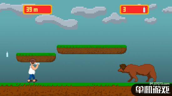 这款游戏《穿越俄罗斯》就是个横版跑酷游戏,玩家操作一个狂饮伏特加的俄罗斯醉汉,不停的向前奔跑,途中收集各种伏特加,并且躲避拦路的各类动物(公牛,熊之类的),像素风格的世界一共有三个大关卡,至于操作手感和判定则非常之迷,成就判定也非常之谜,有时候跳着跳着就拿了好几个成就,至于成就的命名也很不走心,“new_achievement_1_10”或是“new_achievement_127_26”,这根本就是游戏开发中用的代号。
