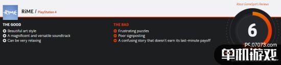 权威媒体GameSpot给《Rime》打出了6分,而对于本作的缺陷他们则讲得更为清楚:虽然《Rime》的艺术性很高,配乐以及画面可圈可点,但因为繁琐的解谜,设计不合理的路标,以及让人看的云里雾里的故事,都让游戏变得更具表面功夫,而缺乏真正有意思的游戏内容。