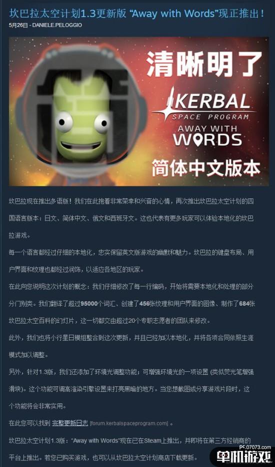 其实这个游戏一直没有放弃汉化,早在今年3月份我们就曾做过《坎巴拉太空计划》加入汉化的报道,不过那时候的中文是内部中文,并未在商店页面出现。