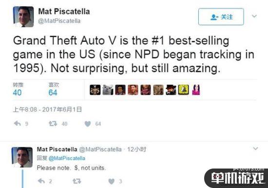 市场调查机构NPD公司的分析师Mat Piscatella在推特上表示,自从NPD公司从1995年开始跟踪销售数据以来,《GTA5》是美国市场最畅销的游戏。随后Mat澄清道,这个标准指的是在收入方面,而不是销量。而第二名则是《使命召唤:黑色行动》,不过Mat并没有公布两者之间的差距。