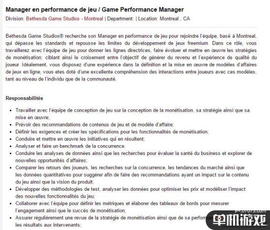 这则招聘启事正在招募一位Game Performance Manager,在蒙特利尔工作,加入团队来推进一款尖端3A免费增值模式的游戏的开发进程。至于这个免费,很可能指的是本体免费,含内购的这种免费模式。