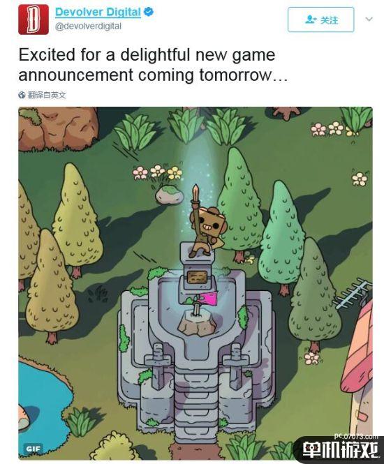另外Devolver Digital官推也公布消息,明天将推出一款全新作品,从预览图上看,应该是一款卡通风格,上帝视角的作品,图中小人的样子总让人有种《塞尔达传说》的感觉,敬请期待。