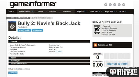 原文:今日,外媒Gameinformer曝光了R星的新作《恶霸鲁尼2》(游戏英文名:Bully 2: Kevin's Back Jack),游戏库中显示本作将登陆PS4平台,类型为动作类,很明显这就是经典的《恶霸鲁尼》续作。