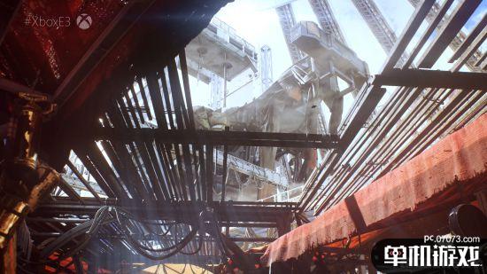 据悉,游戏有种非常巨大的沙盒地图,游戏演示开场那个“塔苏斯堡垒”就是所谓“网游”中的基地,还可以理解为《狂怒》中的城镇。这些堡垒,玩家可以互相沟通,自定义战甲(Javelin),选择各种任务,发布会制作者演示了拯救游戏配角Praxley的工匠们。