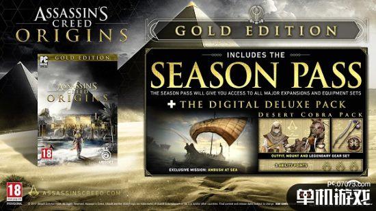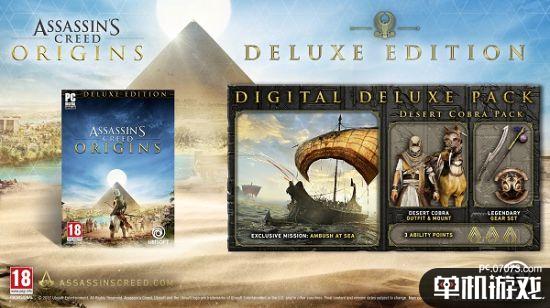 《刺客信条:起源》豪华版包括:“海上突袭”任务;“沙漠眼镜蛇”组合包:1套服装、2种传奇武器、1种传奇盾牌和1个坐骑;3个能力点数。