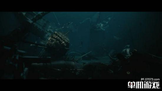 巨大海怪身影初现(中间是一艘近代风帆战舰……)