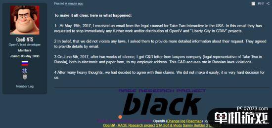 1.在2017年5月19日,我从法律顾问那收到了一封来自美国Take-Two的邮件,上面要求我停止对Open IV的更新支持和在网上的发布工作,以及“把自由城放到《GTA5》”的MOD项目。