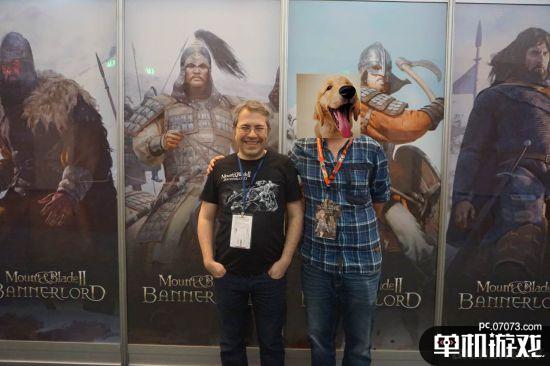 《骑马与砍杀2》的展示区并非对公众开放的,并且也不在两个大场馆当中,这让我和大米稍微找了一会。他们的展区并不算大,试玩区提供了四个位置,仅供邀请或预约的人员进入。在等待试玩期间,我们闲着无聊在看之前公布的两段演示,不知何时CEO Armagan Yavuz坐到了身边,并与我们热情的聊了起来。