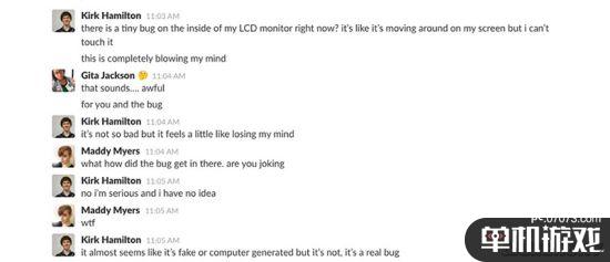 最近E3 2017刚过,全球的游戏媒体都步入了正常上班的轨道,经常为我们带来各种趣闻还有“高能时刻”的Kotaku也不例外。这一天,游戏编辑Kirk Hamilton像往常一样盯着电脑干活,然后他突然发现电脑显示器上好像有一只小虫在爬来爬去,出于本能他伸出手朝屏幕上拍去,然而惊奇的是他却扑了个空,Wtf?我屏幕坏了还是有黑客入侵我了?