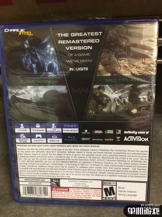 不过这也不是第一次曝出重制版将单独销售,此前日本亚马逊也单独上架了《COD4》重制版,根据显示的商品信息,PS4版和Xbox One分别将会在6月20日和7月20日正式发货。