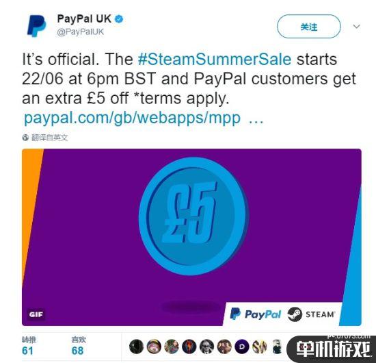 根据PayPal英国官推的消息,今年Steam夏促时间将于当地时间,6月22日下午六点开启,也就是北京时间6月23日凌晨1点,虽然不是官宣,但PayPal通告每年的冬夏促销已经成了惯例,时间也和此前的曝光的时间一致,看来消息足够真实,还有两天时间,各位准备好守护G胖的微笑了没?