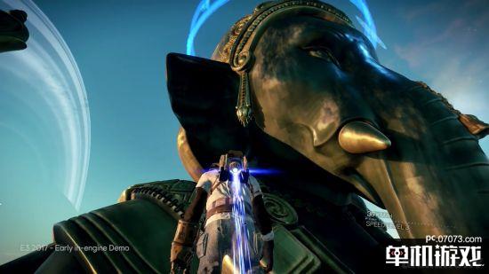 游戏创意总监Michel Ancel介绍了游戏的一些概念上的玩法。育碧计划为《超越善恶2》打造一个庞大的宇宙,玩家们将驾驶飞船去探索这个宇宙。而在E3预告片中出现的那个象头神雕像,在和猴子角色的对比下显得异常巨大。而最后猴子借助喷气背包非到雕像头顶后,这座雕像的尺寸就显得更加夸张,而这也只是这个星球的一小部分而已。而飞出整个星球后则是浩瀚的宇宙。