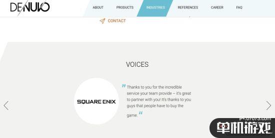 在Denuvo公司官网上,我们可以看到了三个公司的致辞,他们是:id Software,Crytek和Square Enix,前两家的言语措辞只是一般性质的感谢,毕竟其中id已经把旗下的《DOOM》撤销了D加密,而至于SE的话语,则略显有趣了。