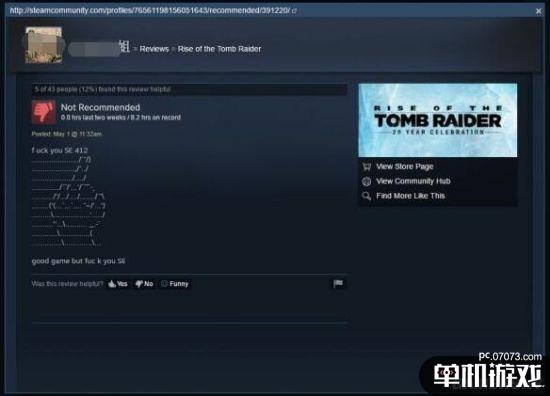 这位中国玩家对《古墓丽影:崛起》给出差评“惩戒”SE