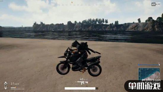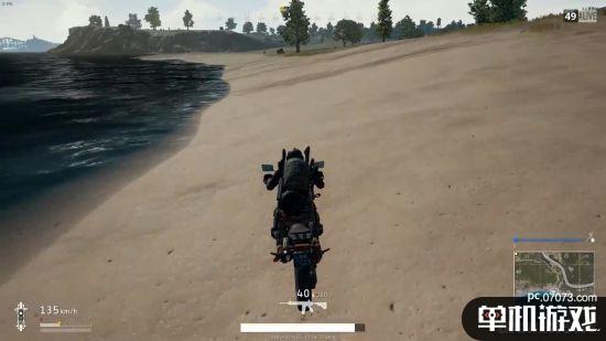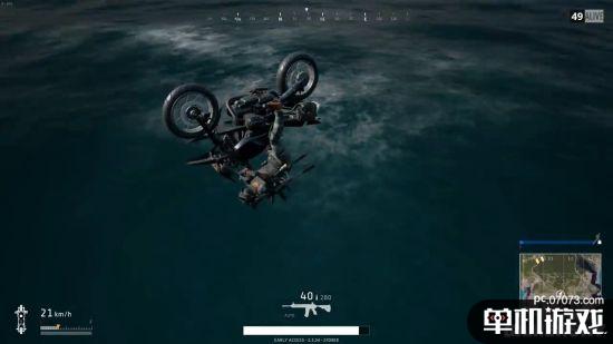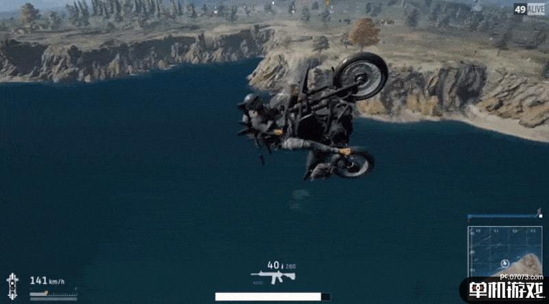 如视频中那样,Nillaaa在上坡时似乎想玩个特技摩托,但是在空中翻滚的时候碰到了“网络延迟检测”这个问题,可是等重新稳定之后,也没车毁人亡,而是莫名其妙地横跨海湾,跑到了南岛边上。从地图来看,大致就从图中点1的位置,跑到了点2的位置。