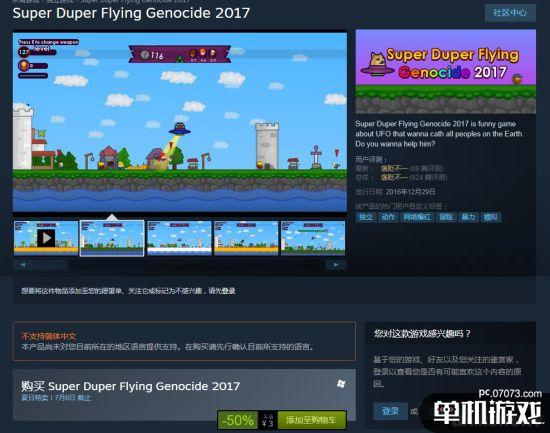 《Super Duper Flying Genocide 2017》就是一款典型的构造简单、成就大把的spam游戏,你只需驾驶飞碟狂点右键把屏幕上的一个个小人全吸进去就行了。每次成功吸人都会提升你的游戏等级,而每升一级就能拿到一个成就——顺便说一下,这个游戏总共可以给你1002个成就,而且这些成就的图标也都设计的相当用心,看起来就和你买游戏、集卡、赚徽章获得的成就图标总体设计几乎一模一样。看来这款游戏的制作者也非常清楚自己该做什么。实际上,看一下这款游戏的Steam评价,你就会发现几乎每位购买游戏的玩家入坑的理由都完全一致。再看看这款游戏的相关论坛,里面热热闹闹地挤满了请求开发者给这款游戏加入更多成就的玩家。根据SteamSpy上的数据,这款游戏自2016年12月29日发售以来,《Super Duper Flying Genocide 2017》已经售出了大约10万份。作为一款超轻量级、随手就能做、还没进行过什么推广的游戏,10万已经是个庞大的数字了。这款游戏的成本不会超过一杯星巴克咖啡,却让大量的玩家纷纷剁手。