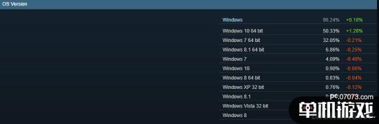 此外,Win10系统依旧是Steam用户使用最多的系统,50.33%的占比碾压其余所有桌面系统。