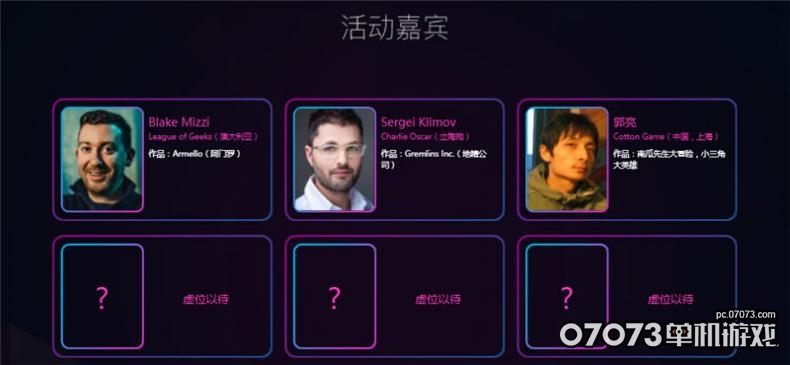 另据页面下部的介绍,分别来自《阿门罗》《地精公司》《小三角大英雄》的三名独立游戏团队代表将作为嘉宾出席,但是否即为日程中的主题演讲者,他们又会带来怎样经验之谈?还有待明确。