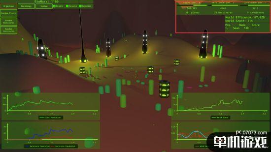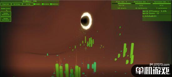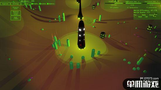 在一番折腾之后,这位试玩编辑查看了一下自己的游戏数据:由于他并没有搞清楚自己正在做些什么,这个他创建的世界效率相当低下,直到他退出游戏时效率才达到13%。不过他还是表示,进行各类尝试、努力搞清楚怎么建立、平衡生态系统,这是相当有趣的游戏方式。他觉得如果能看到这款游戏的源代码,玩家们应该就能够建立更好的生态系统——他们不用总花时间辨明哪些基因是最有效的,可以直接构建理想的生物环境了。