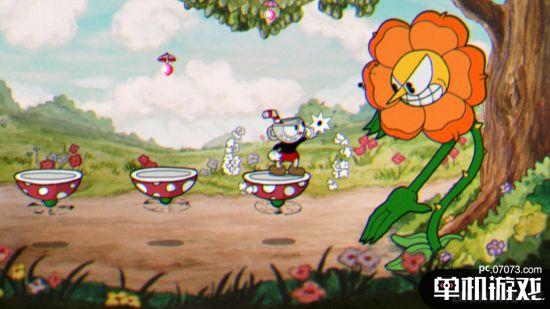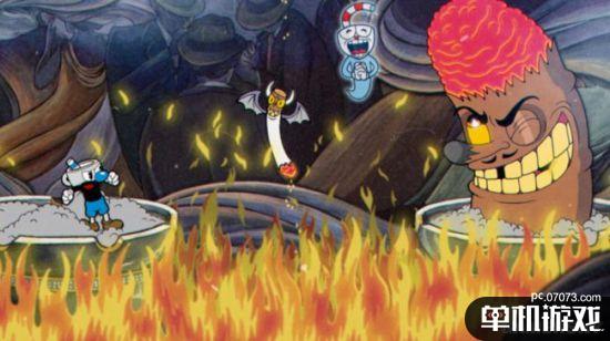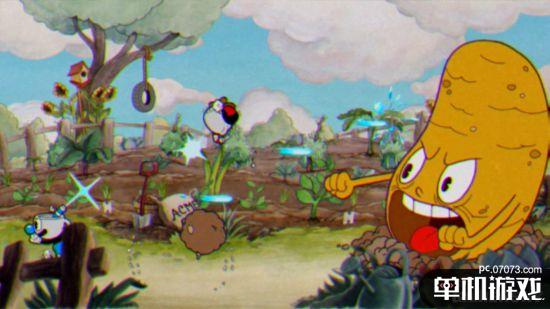 即使制作经典赛璐璐动画需要花费了大量时间和精力,但是开发组选择这种艺术风格也是有一定优势。它允许Chad和他的团队创作很多异想天开的角色和关卡。 在游戏里,你不仅会跟一条喜欢吐火球的巨龙战斗,而且还需要击败一只巨大且愤怒的马铃薯。