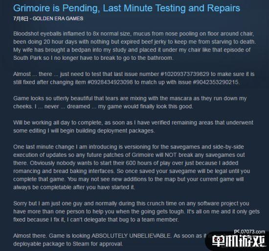 随后开发者Blakemore在社区公告中表示,他目前正在进行最后的一些验证工作,一旦完成之后就将部署游戏文件,但是并没有说明什么时候可以完成这项工作。