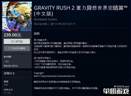 此前过审的《重力眩晕2》已经登陆PS国区商店,售价239元,现在购买即可获得特典“另一个故事 时间方舟 瑞雯的选择”和“黑天使服装”。同时PlayStation Plus会员购买数字版还可获得定制主题专享免费福利。