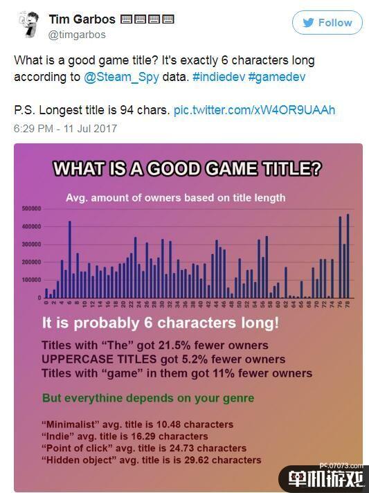 一个怎样的游戏标题才算是好标题呢?根据Steam Spy的数据,也许6个字符的长度是最好的。