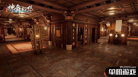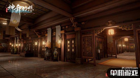 壮阔高耸的宫城内,数不清的亭阁与宫院由曲折的回廊相互连结,不知能通向何处。满目皆见古朴典雅的梁柱与壁绘,庄严而深美。在陶唐帝都阊阖皇宫的场景中,虚幻4次世代引擎显露出其强大的渲染力,盆栽、灯笼、地面等不同材质的特点尽皆展现。建筑的内部设计也贴合了中国传统建筑低调厚重的独特美感。仔细观察四周装饰,除陶唐的元素外,屋中亦有不少充满奇幻色彩的异域特色物件,使宫殿多了一份幻想与玄妙。