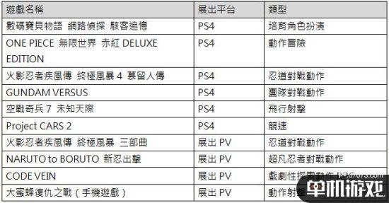 预定展出手机游戏一览-日本万代南梦宫娱乐