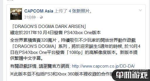 另外CAPCOM Asia也于今天公布,确认于10月4日推出繁中版《龙之信条:黑暗觉者》,登陆PS4/XboxOne平台。《龙之信条》系列全球累积销量320万分,持续吸引玩家关注,在5周年之际将推出1080P的高清版本,并支持繁中字幕。