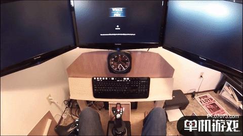 Maverickturner显然是一个野生手工达人,他本人并不是个木匠,而是一个退伍军人,上面的动图就是他制作的第一个版本,这是一个大型三屏游戏系统,基本快占满他的卧室,并且是固定不可拆卸的,他计划打造一个类似F18驾驶舱的游戏桌,不过随着搬家这个计划并未成行。