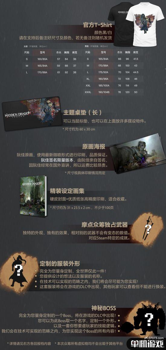 众筹档位有68元无偿支持,120元的高级玩家支持,588元的收藏家支持等多种选择,最高甚至有66666元、80000元两档,而获得的奖励也各有不同,包括T恤,海报,桌垫,画集等等。《隐龙传:影踪》将于2017年8月率先登陆PS4平台,建议零售价188港币。