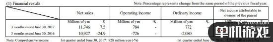 “截止到2017年6月30日,本季度合并后的净销售额为117.44亿日元(比上年同期增长7.5%),营业收入为7.84亿日元(上年同期亏损7.26亿日元),经常性收入7.72亿日元(上年同期亏损20.8亿日元)”