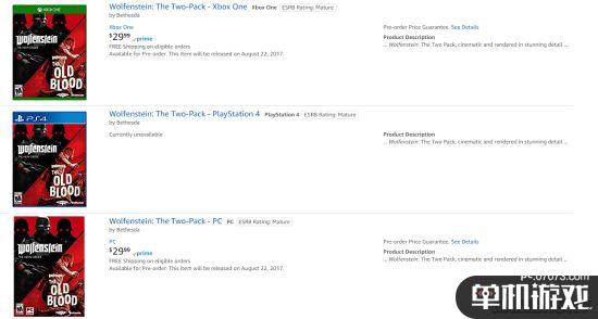 目前亚马逊上显示《德军总部:二合一》正处于预购中,将会在8月22日正式发售,并且PS4版暂时无法购买。