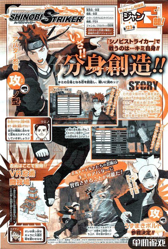 在的一期《Weekly Jump》杂志上,披露了《火影忍者博人传:忍者先锋》的角色创造系统“分身创造”。