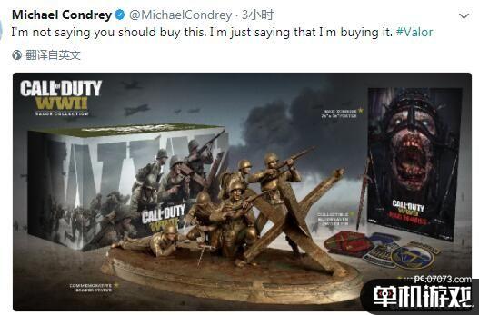 大锤工作室的联合创始人迈克尔·康德里今天在推特上分享了《COD14:二战》收藏版(The Valor Collection)的内容,并且还写道“我不是说你们得买这套,我只是想表达我肯定要买。”。