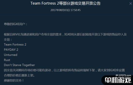 至于之前出事的IGXE,他们的通告中表示,经过和V社交涉,IGXE将陆续开放部分游戏的饰品存入及交易。
