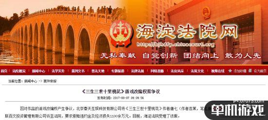 海淀法院官网今日发布案件快报,因对作品的游戏改编权产生争议,北京春天互娱科技有限公司将《三生三世十里桃花》作者唐七(作者吉某,笔名唐七)及北京中联百文投资管理有限公司诉至法院,要求索赔违约金及经济损失1100余万元。目前,海淀法院受理了该案。